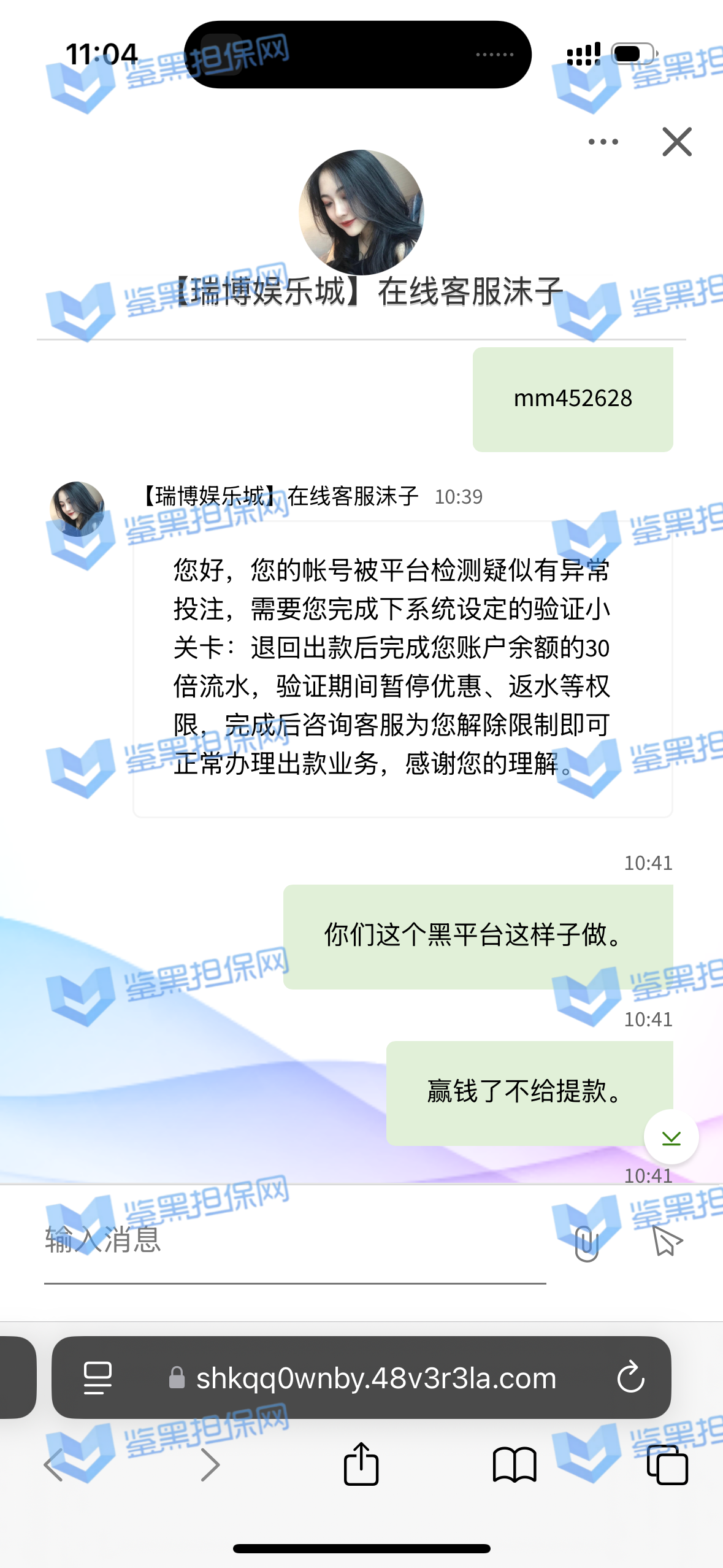 4.用户提交维权需为本人提交,若代替让人发布维权鉴黑担保网将拒绝受理;