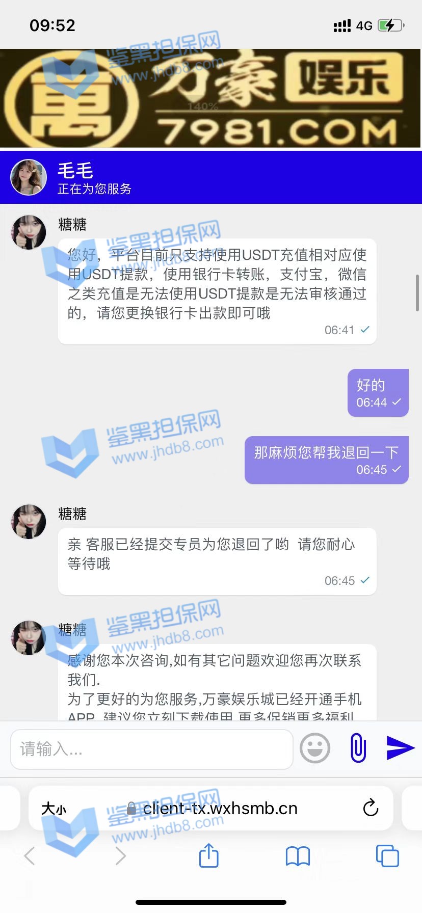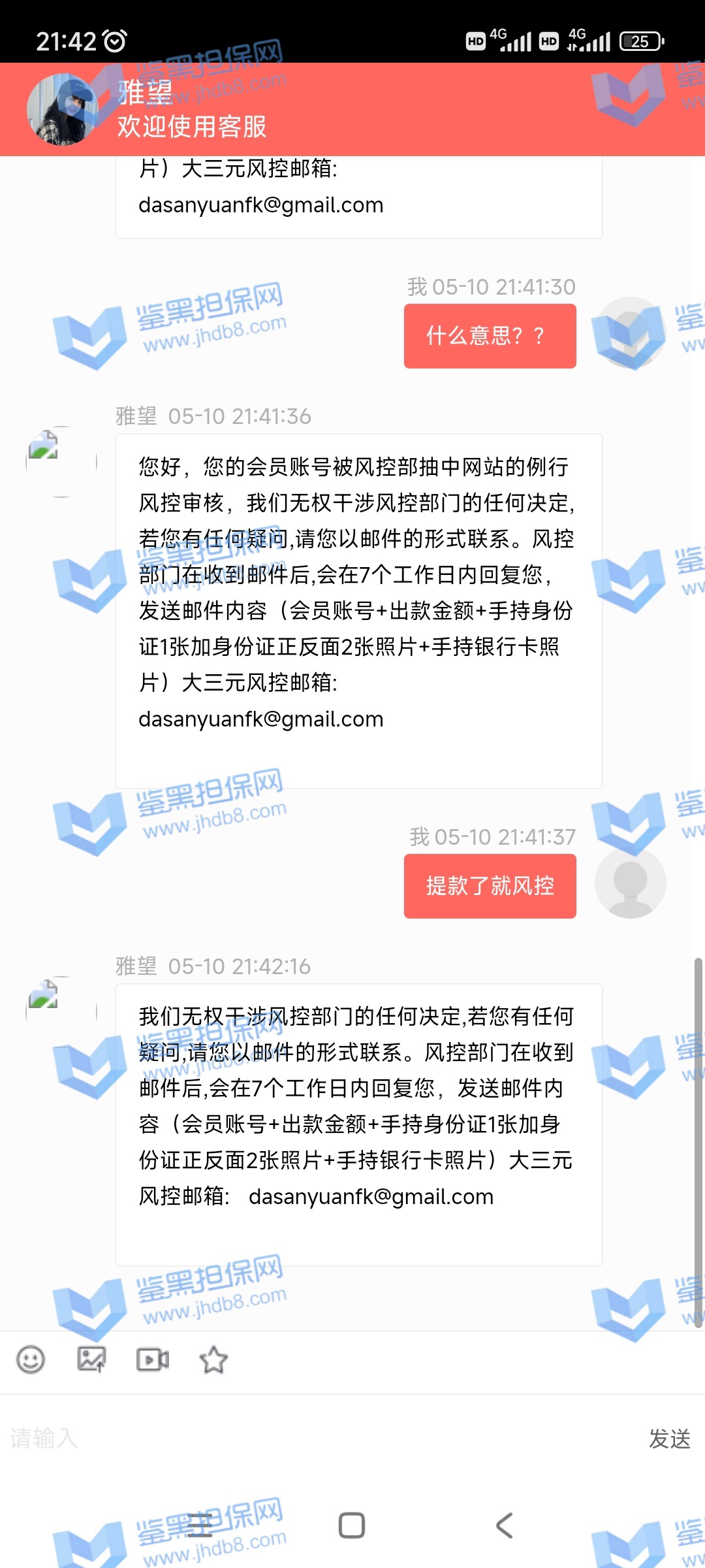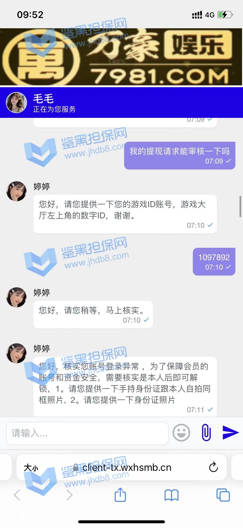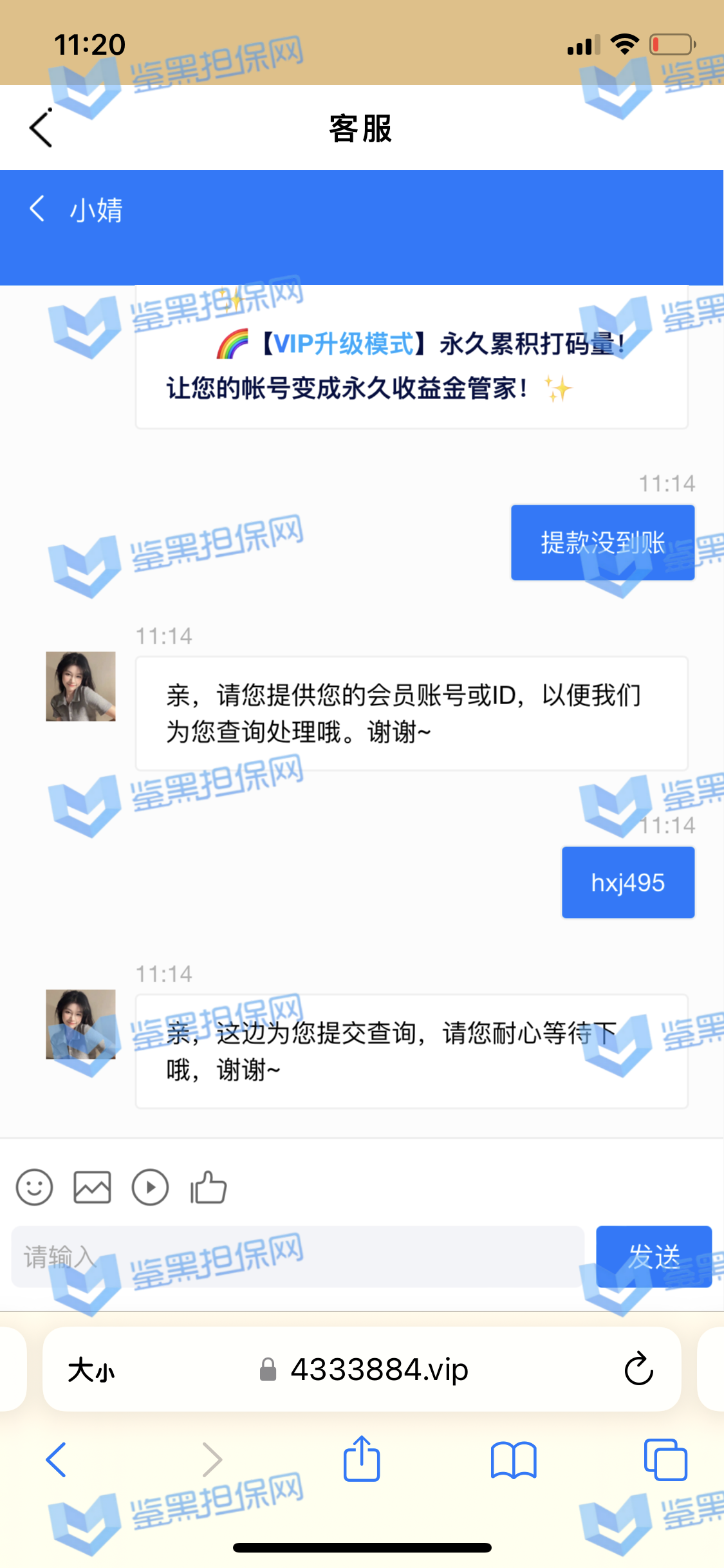 4.用户提交维权需为本人提交,若代替让人发布维权鉴黑担保网将拒绝受理;