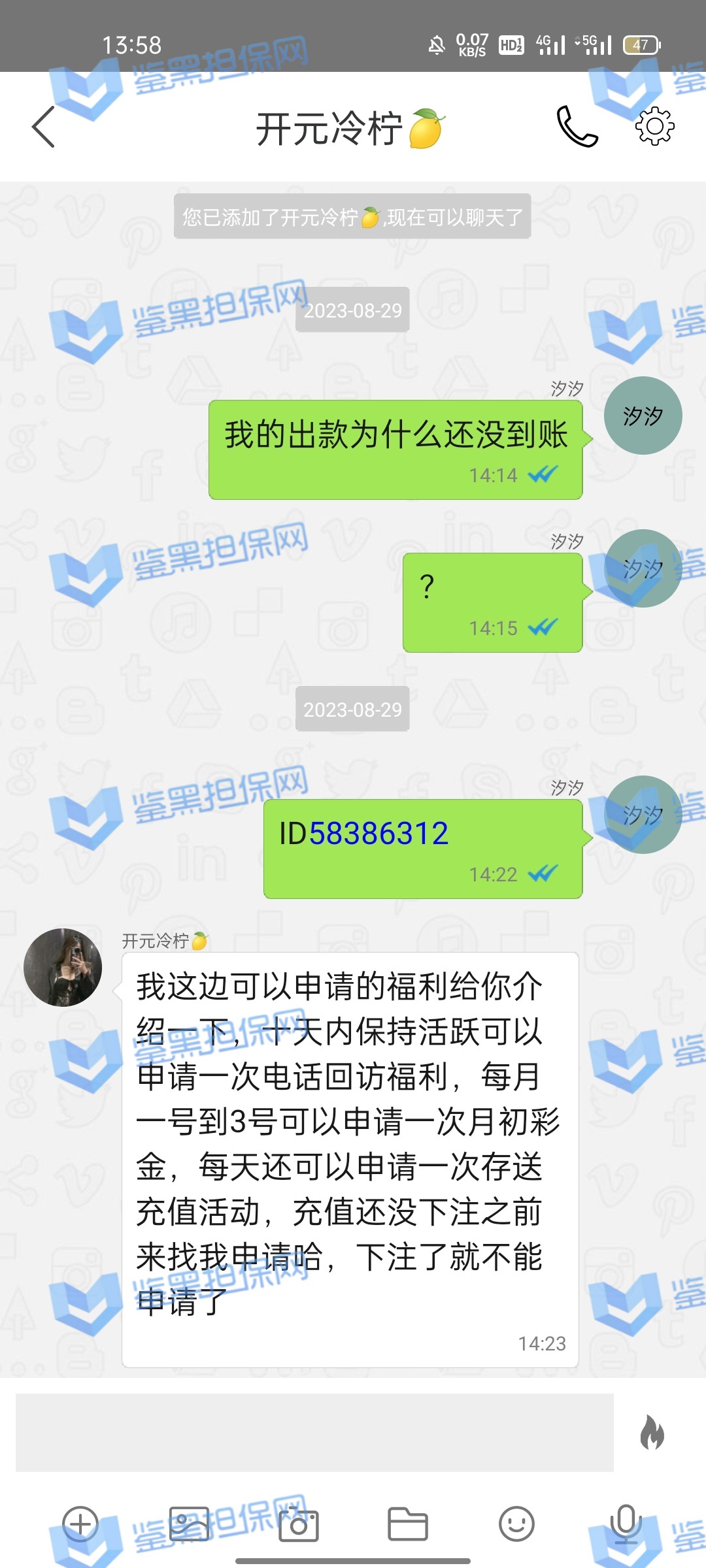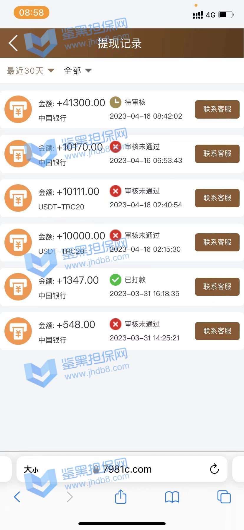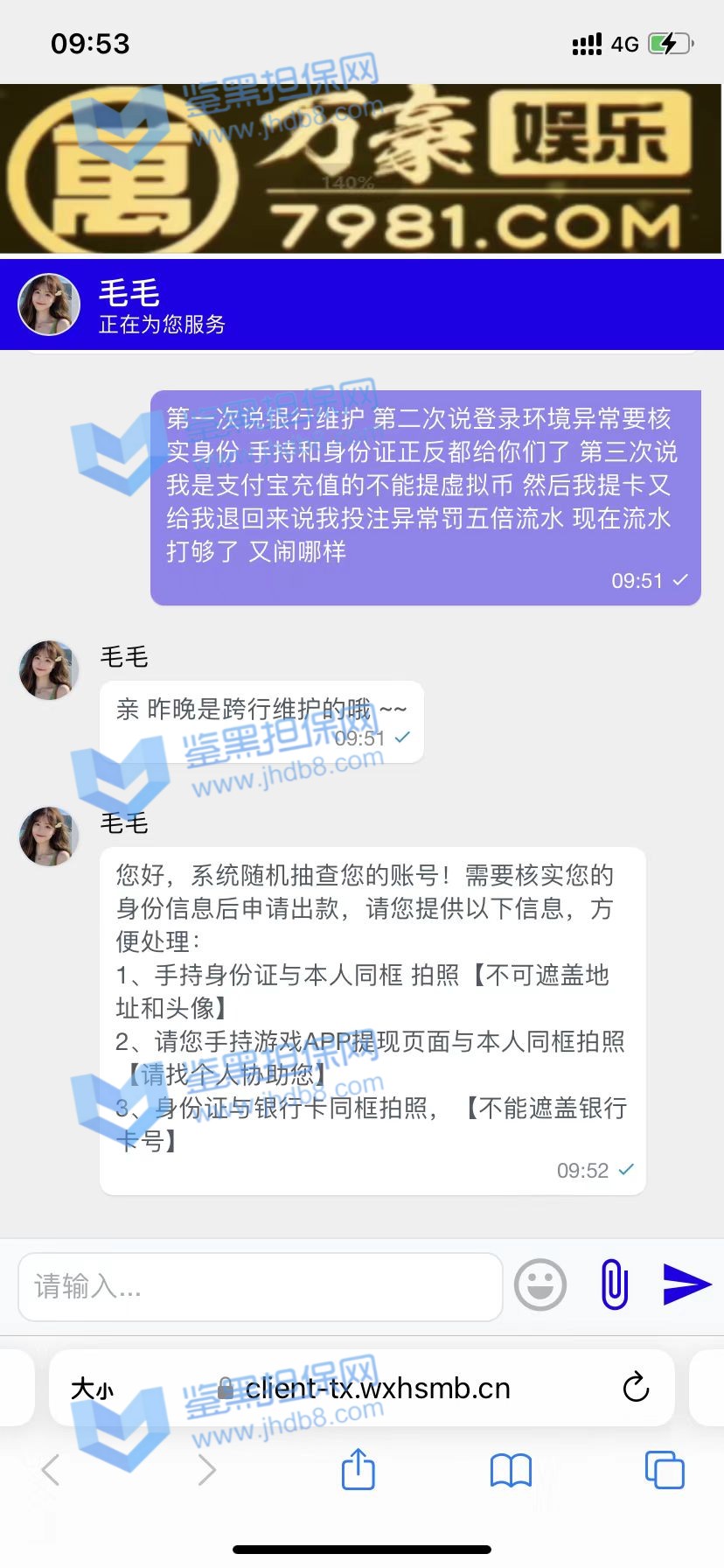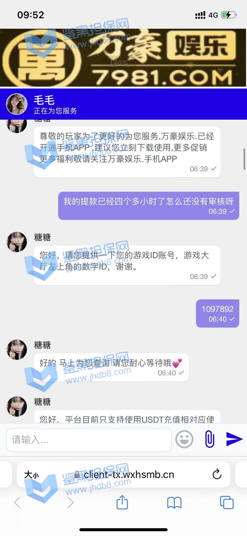 4.用户提交维权需为本人提交,若代替让人发布维权鉴黑担保网将拒绝受理;