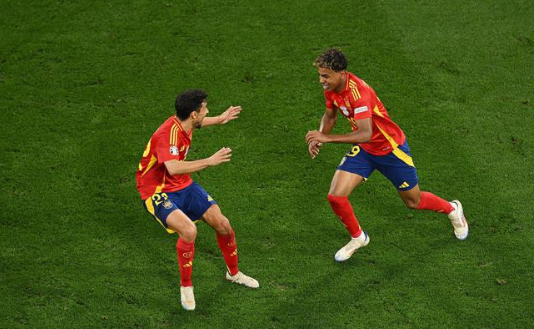 西班牙(4231):23-乌奈-西蒙/24-库库雷利亚、14-拉波尔特、4-纳乔、22-纳瓦斯(57'5-达尼-维维安)/8-法比安-鲁伊斯、16-罗德里/17-尼科-威廉姆斯(90+4''18-祖比门迪)、10-奥尔莫(76'6-梅里诺)、19-亚马尔(90+4'11-费兰-托雷斯)/7-莫拉塔(76'21-奥亚萨瓦尔)