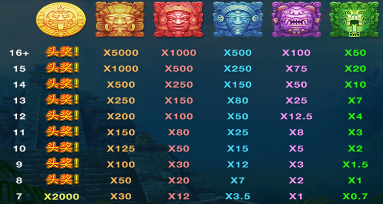 接下来就到了让人扼腕叹息的时刻了,请看下面赔付图,7个金币是x2000倍,但是8个金币是