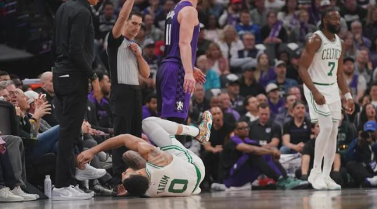 过去一年,谁是被垫脚最多的球员?可能很多球迷想不到,他就是塔图姆。凯尔特人上一场113-95大胜国王,塔图姆出战26分钟,15投8中,三分9中5,罚球8中4,砍下25分7板8助。第三节还剩3分35秒,塔图姆被小萨垫脚后伤退。
